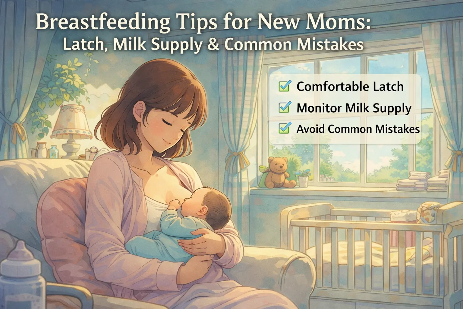 Breastfeeding Tips for New Moms: Breastfeeding can feel surprisingly hard at the start—even if you’ve read a lot about it. Most new moms I’ve met (and what I’ve seen in real life) don’t struggle because they “can’t” breastfeed; they struggle because nobody shows them the small, practical details: how to latch comfortably, what “enough milk” actually looks like, and how to handle sore nipples or a fussy baby at 2 a.m. This guide is for new moms who want simple, real-world steps to feed their baby and protect their own body and confidence.